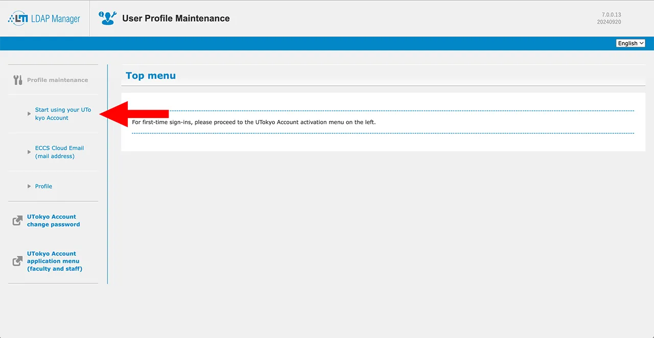 1. Access the UTokyo Account User Menu.