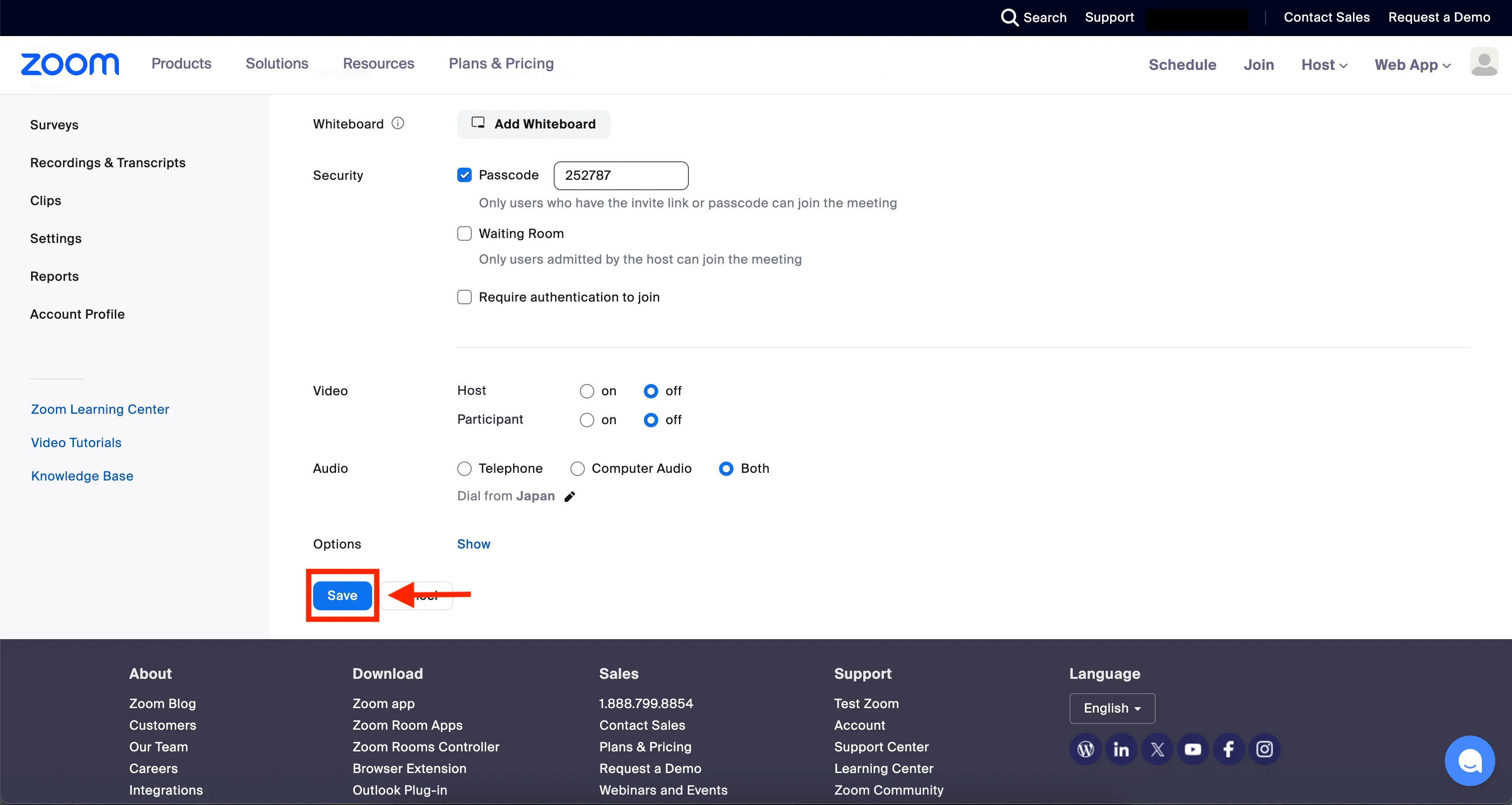 • When enabled, the passcode is embedded in the invitation link, eliminating the need to separately inform participants of the passcode. Unless there is a specific reason, it is recommended to keep this setting on.