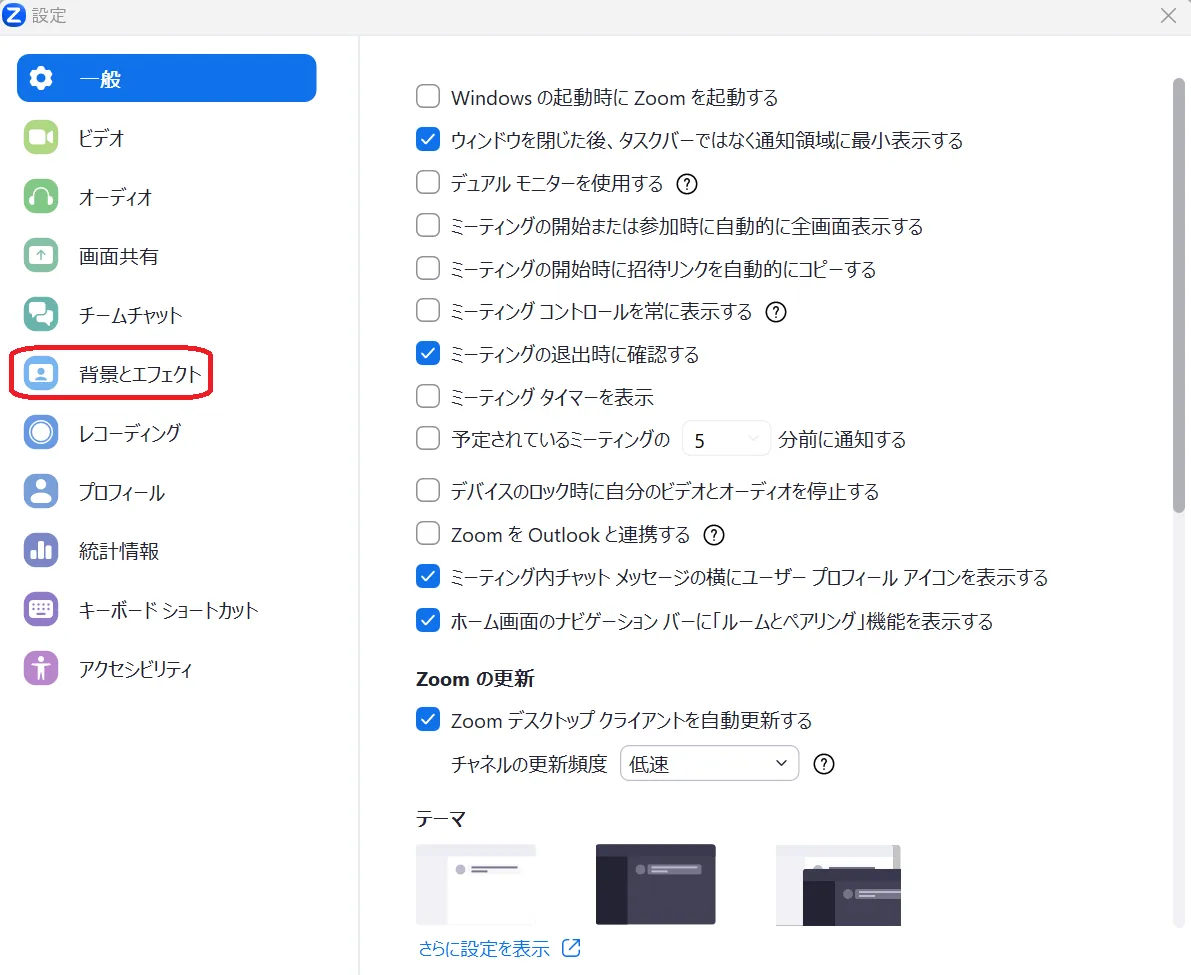 1. Zoomアプリケーションを立ち上げ,設定を開き,「背景とエフェクト」を選んでください.
